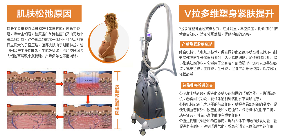 首先准妈妈生产后往往会出现皮肤松弛的现象,产后妇女较大的问题就在腹部,由于腹部皮肤在生育过程中过度伸张与手术刀伤,造成产后妇女腹部松弛,遍布妊娠纹、桔皮纹与疤痕,不仅影响美观,更是产后身体变形的罪魁祸首,无疑是女人的心腹大患。