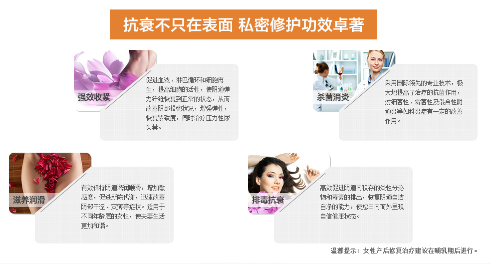 四、大多数女性由于受到传统意识的束缚,认为阴道松弛、私处干涩等问题是较为难以启齿的,不好意思去看医生,只能默默地忍受这些“不隐秘”带来的痛苦。对此,空军总医院激光整形美容中心美容内科专家表示,这些女性私处问题并没有朋友们想象中那么可怕,只要进行科学适当的治疗和调理,都可得到良好改善,让您保持青春年轻态。