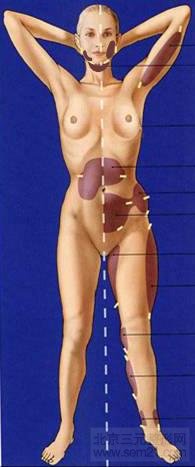 大腿脂肪与臀部脂肪相同,由含有纤维成分的脂肪细胞组成,大腿的脂肪分布在大腿外侧、内侧、膝盖上侧和大腿后侧,一般要选择多处切口进行吸脂。
