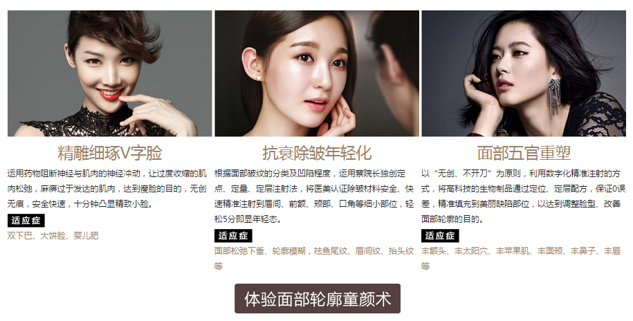 饱满的肌肤、精致的五官,是显示女人活力与青春的标志。蔡文静院长作为瑞兰玻尿酸、逸美玻尿酸、注射瘦脸、双美胶原蛋白等四大注射材料厂商认定的指定注射医师,30年精益求精,综合多年来的临床经验,深刻体会到单项整容不一定就能获得美丽,面部综合整形才是未来医美发展的趋势。