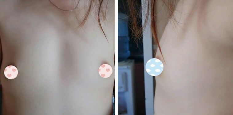 哈哈哈!手术第五天啦!我又来啦!胸已经不疼啦,绷带也拆了,真是舒服啊!现在就是胸还木木的,长的那个小血块也平了,颜色也淡了。真是开心啊!今天在手机里找到一张术前穿着没有钢圈的薄文胸的照片,赶紧拿来穿上做了对比。终于我也可以有胸了![偷笑][偷笑][偷笑]较后一张躺着拍的看着好大啊!现在胸还有一点点硬一定好好按摩争取快点恢复!!!!