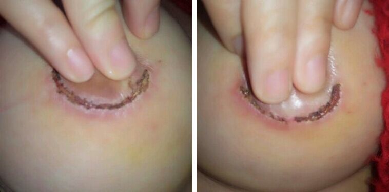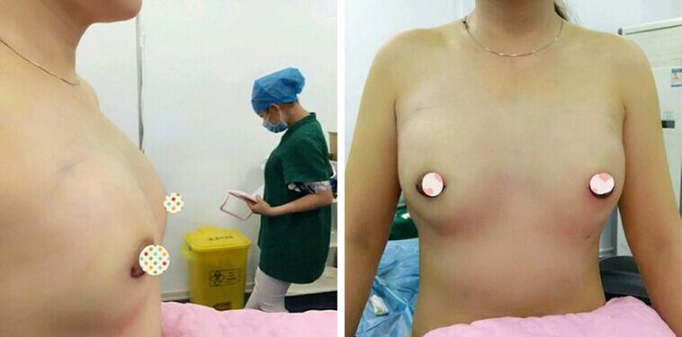 手术第十二天啦!左边结痂还没开始掉,右边中间掉了点!我发现掉了的地方没什么疤痕的样子!不会连疤克都用不上了吧!哈哈!躺着!侧躺!捏着!站着!各种拍给亲们看看!不知道仔细的亲爱的有没有发现乳房下面的小红点!那就是我打局麻的时候留下的针眼,我在我们这里的医院整形科去拆线的时候,医生居然问我!局麻痛不痛……说我真有勇气,局麻确实比全麻没问题很多,又问我什么牌子的假体多大多少钱!我说了后他说收的真便宜!旁边小护士看见医生出去拿东西也跑来问我哪里做的!说果好好,好自然她也想去做……我真想说妹子你们这里不就可以做啊?