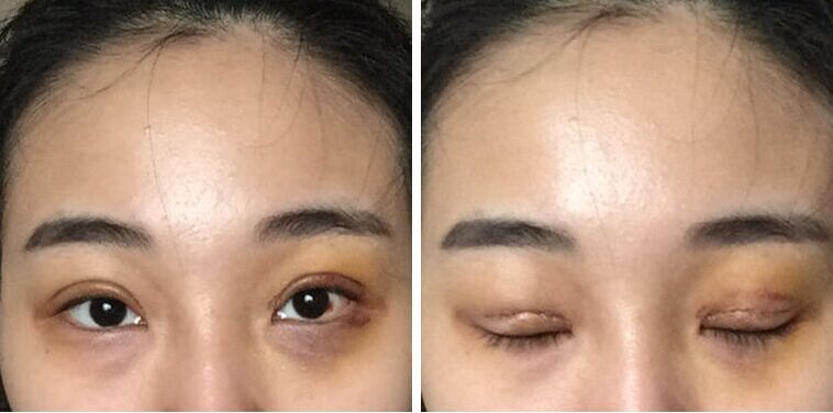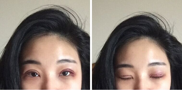 【第三天】淤血开始慢慢散掉,我没有热敷也没有冷敷,就是会用棉棒按摩一下眼角什么的..现在千万别出门,不然会被误认为“被家暴”..哈哈哈哈哈哈哈哈..昨晚开始喝薏仁水了!消肿利尿散瘀...加油!!!