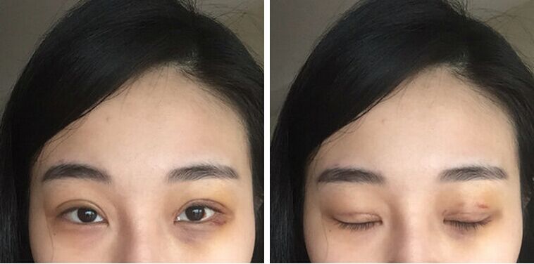 【第八天】拆完线的第一天,左眼恢复得比较快,可能是淤血的时候我按摩得比较多;右眼还是肿肿的,肉条也比较明X,等线口愈合之后就准备专心按摩眼睛消肿啦!