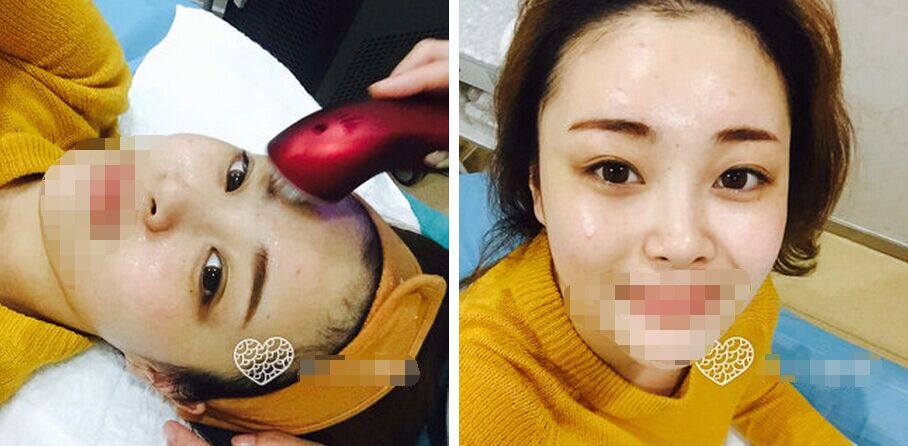 第三步光子嫩肤这个调节过程是用机器激光照射黑色素,黑色素越多感觉越强烈,感觉像小针一下一下的电我,但是不疼,可以接受,时间大概在15分钟左右,过程中医生姐姐怕我紧张一直跟我聊天~