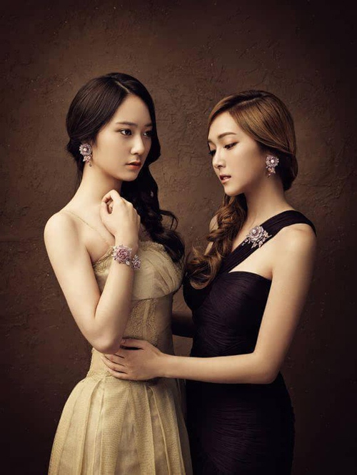 女性化的款式和圆形的耳钉,很好地中和了Krystal较为骨感的方脸。▼