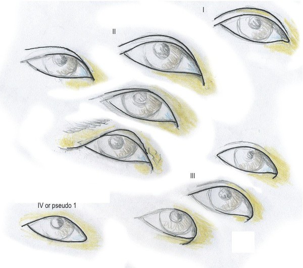 内眼角的赘皮可分为以下四种类型,不同的类型需要选择不同的手术方法。