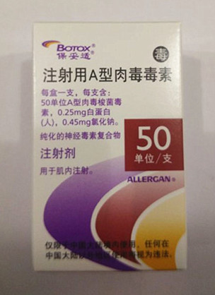 目前,食品药品监管总局仅批准上市了两种注射用A型肉毒毒素,分别为兰州生物制品研究所生产的国产产品(商品名:国产瘦脸)和Allergan Pharmaceuticals Ireland生产的进口产品(商品名:注射瘦脸 BOTOX),产品包装见下图,请消费者使用时注意辨别。兰州生物制品研究所在全国29个省份指定了77家经销商(见附件1)。国药控股分销中心有限公司是进口产品(注射瘦脸)的总经销,目前在全国30个省份指定了56家二级经销商(见附件2)。医疗机构或医疗美容机构应当向经药品生产和进口企业指定的经销商采购注射用A型肉毒毒素。