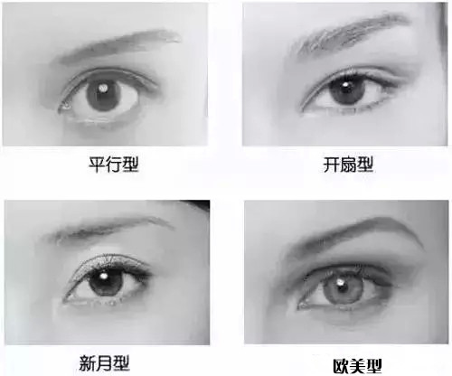 双眼皮大概分为四种类型,有平行型、开扇型、新月型和欧美型。