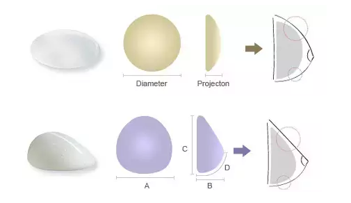 说起假体隆胸,我们就要说说隆胸的假体材料了~假体形状主要有两种,一种是圆形,另一种是水滴形。
