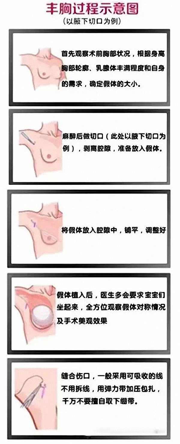较后一张图告诉宝宝们假体隆胸的过程,看看吧~