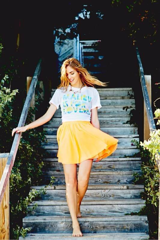 白T恤配明黄色的短裙,