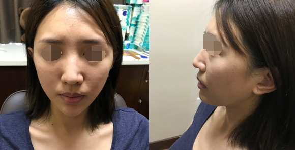 术前照片,妹子鼻子比较塌,鼻头鼻翼比较如,山根低,改良的方案选择鼻部手术改良。