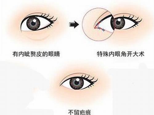 开眼角用于矫正小眼症,先天性小眼症由于既有睑裂狭小、严重的内眦赘皮,又常合并内眦间距增宽和上睑下垂,因此手术需分次进行。