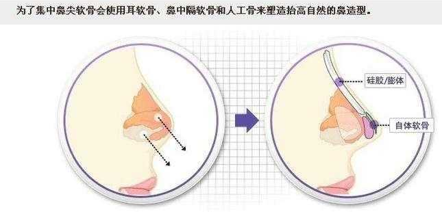 如果个人只需做鼻尖和鼻小柱整形,采用耳软骨和鼻中隔软骨就足够了,如果有矫正鼻梁的需求,就需要使用肋软骨进行手术。