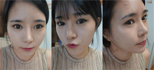 手术两周之后看起来就顺眼多了,双眼皮又变窄了,眼睛可以睁得更大,整个人也显得精神。鼻子一直没有太大变化,因为手术后也没怎么肿,不过拆线之后更挺了。不知道是不是我太着急了,自体脂肪填充已经半个月了还是没有完全消肿,从侧面看,脸有点肿。每天起床的时候特别明X,下午看就好很多,所以现在就喜欢晚上拍照。