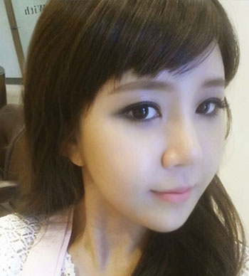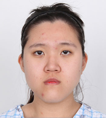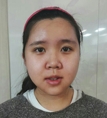 上面是术前的她,双眼皮不对称而且也明X,显得眼睛很小。鼻子扁平没有型,脸也很长,下巴不对称等等,真的是所有的缺点集于一身。