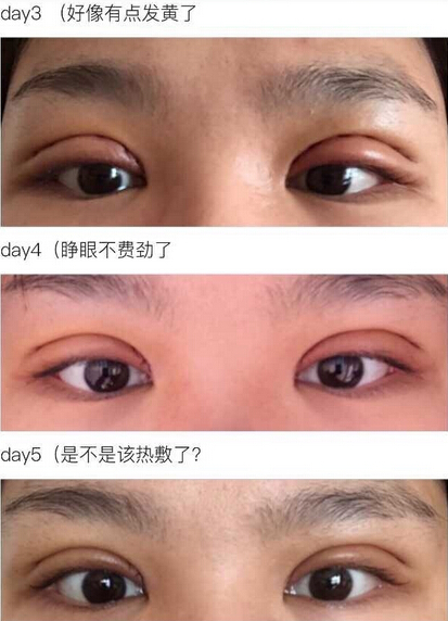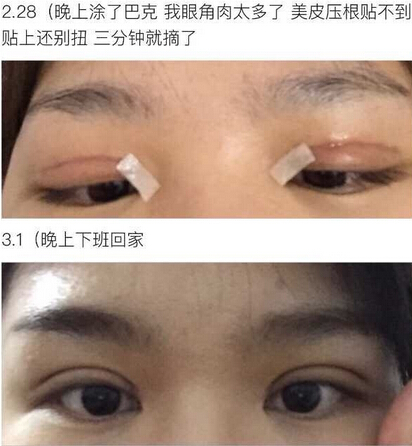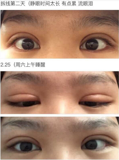 拆线两天我就画了底妆,眉毛,腮红,带着眼镜去上班了,3.3我还是有点眼泪不能自己流出来眼睛不能闭紧的感觉,睁大眼有点累(还有我眼角的线还是没长出来,sad)。3.5右眼尾那条线还有点疼(拆完线天天吃辣暍、咖啡、吃炸鸡,哈哈哈哈哈哈,恢复不好不怪别人)希望评论只夸我,不接受批评,如果你说我,我会怼回去的哦!