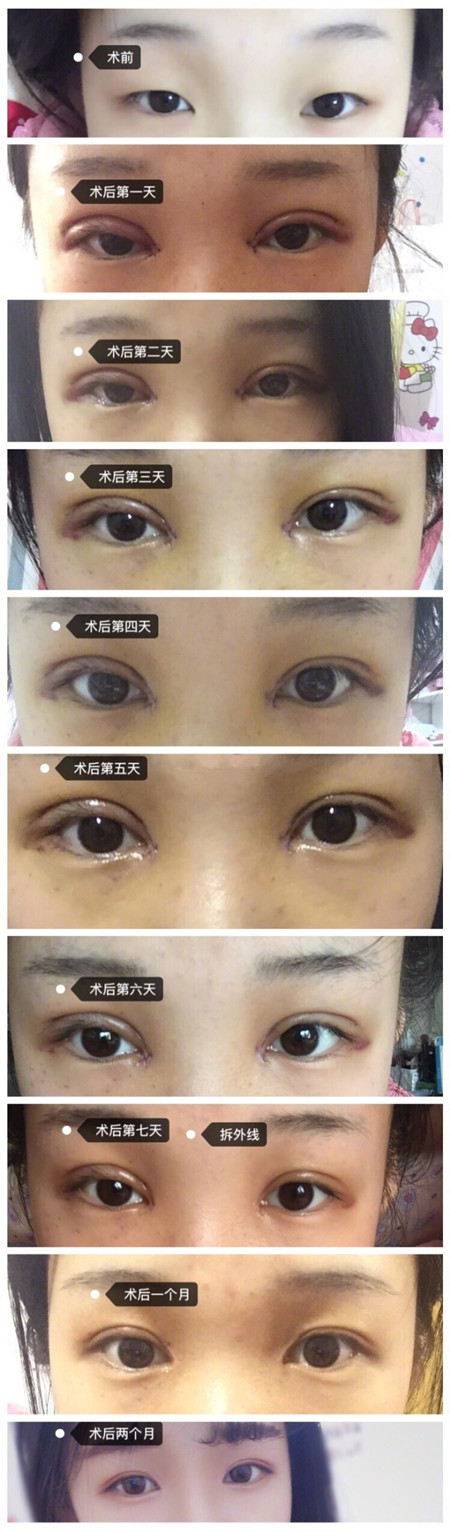 我先做的右眼,但快缝合的时候我就有点感觉了,可能每个人不一样吧,缝的时候有一点点疼,做左眼的时候感觉特别快,可能是心理放松了许多,也没有那么疼了,手术缝完以后医生很用心,一直在给我对比两只眼睛有没有不一样的,之后又修改了几个不一样的地方,感觉医生有强迫症,嘿嘿