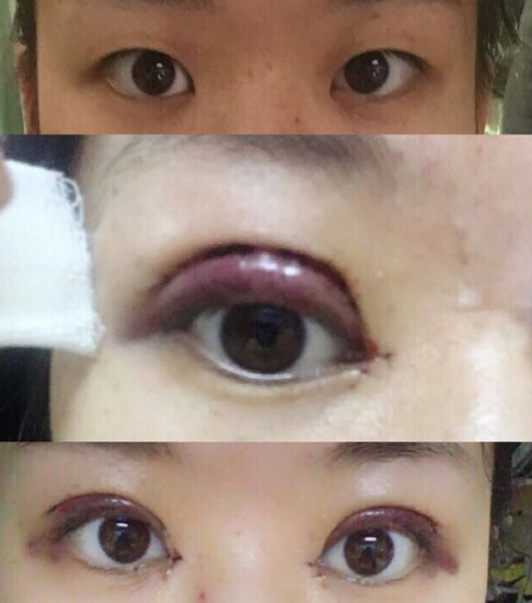 趟上手术台,医生盖了纱布,包头布之类在我头上,只露出眼睛,这之前用酒精海绵擦过我脸,消毒了,而后打麻醉,左右眼皮上,开始会痛的,不过忍忍,剧痛那么2-5秒,就过去了,医生会不停的让你睁开眼,闭上,睁开这么看,大概是估计割的果,弧度吧,以前看其他有朋友说,动手术的时候睡着了(我想这是不存在的现象吧)
