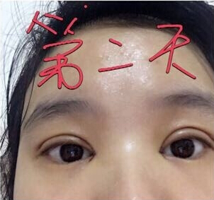 做完小切口双眼皮和开内眼角手术术后第二天