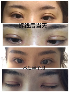 术后恢复感觉比盛蝶网上分享的妹子们慢较为多,所以有一段时间还很难过很抑郁。想想可能恢复好的人更乐于分享案例所以我这个恢复奇慢的也来给妹子们打打气。我现在的双眼皮左眼眼角留疤痕明X(忌口和美皮护,祛疤药物dermatix都有用)。