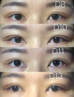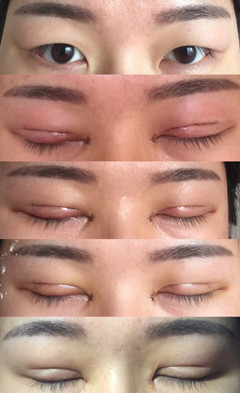 照片可能不太明X,我的左眼现在比右眼小,不知道以后能不能长对称,医生说现在还在恢复期,还没有恢复好,总体来讲还是很满意的,很自然。开了眼角眼睛的确比之前大了,估计到开学也没什么人看得出来,反正没后悔,大家也别犹豫了早割早美。