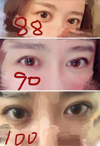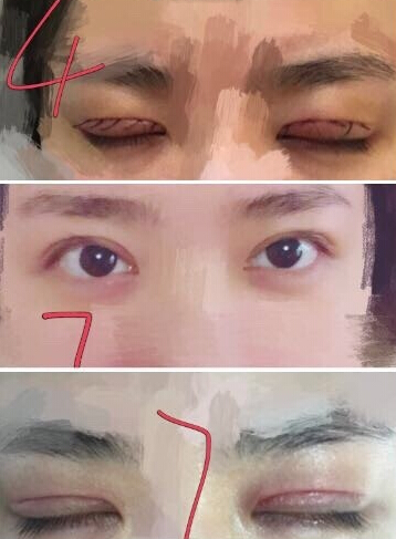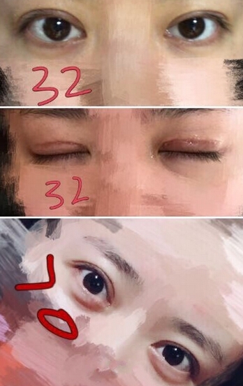 1.睁眼看到自己若隐若现的那个双眼皮线,有的人明X,有的人不明X,自己努力瞪一下。