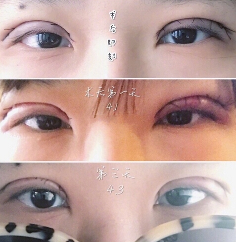 接下来就是打麻药了,从眼尾打向眼头,很痛很胀,很担心会戳到眼球,紧张的手抖,然后应该是切开抽脂了,芳芳和旁边的助手都说这小姑娘脂肪很多,我问能不能多抽点..医生说有多少抽多少,哈哈,到缝线的时候我感觉麻药有点退去了,缝到眼头的时候明X刺痛,不过芳芳也说快好了,我就忍一忍了。
