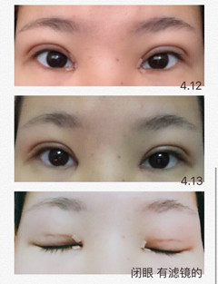 手术完以后就按照盛蝶网说的前几天都在冰敷,第四天开始热敷,一周以后去拆的线,然后就开始用疤克和美皮护,现在有差不多两周了,周围的朋友都觉得我恢复得还蛮快的,嘿嘿,我就迫不及待来投稿啦〜我还有个疑惑求解答呀〜就是我以前眼皮很肿嘛,抽了脂以后脂肪基本都被抽走了可是眼皮并没有变少,那就算完全消肿了以后眼皮会不会还是有点肿啊??