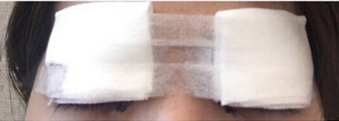 day1:做完回家拍了照,手术之前我在网上看的分享都是说需要冷热敷,但是医生给我的建议是不要去做这些,反而容易弄伤眼睛,所以较后我也没做,就是特别需要注意晚上睡觉要垫高枕头并且平躺的,隔了两天才能拆纱布。