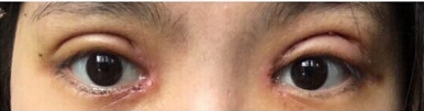 day3:拆纱布,眼睛比较肿,眼角有一定的分泌物,而且缝线会稍微有点刺眼,继续等待中。。