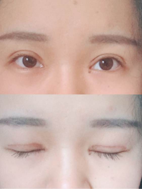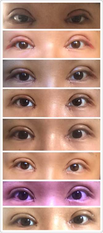 今天的睁眼闭眼图和拆线前后的对比图,我的眼睛一直有点大小, 感觉做了双眼皮和开眼角手术后反而不明X了,也没有增生,但是疤痕还是挺明X的,晚上有擦疤克,白天没擦 美皮护也只贴过一两次。。