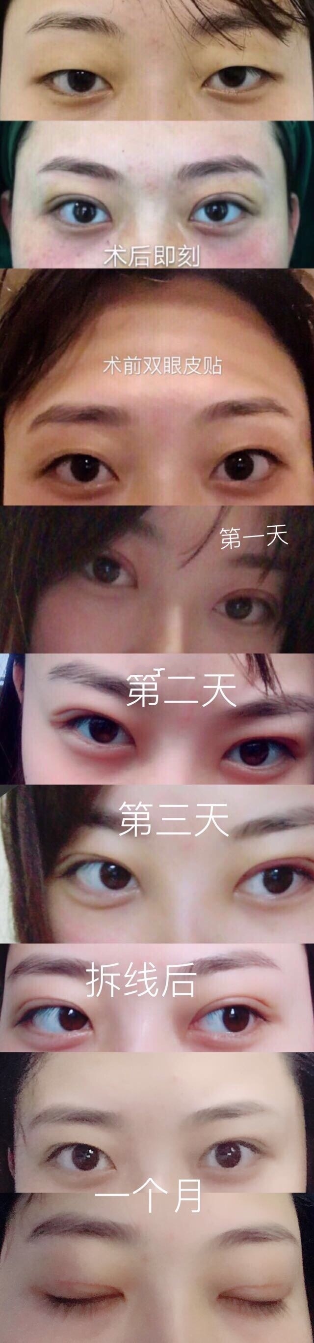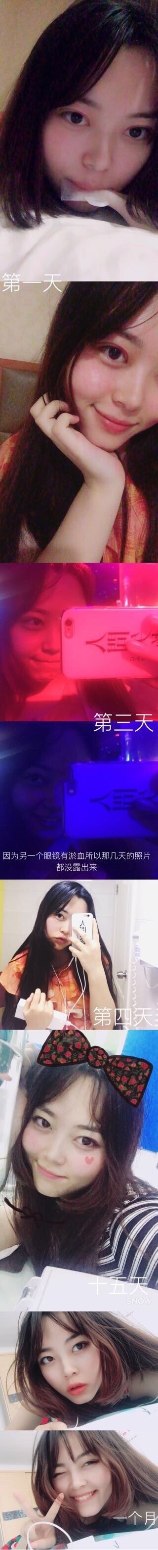 现在一个月了,总觉得做的有点小,不过确实挺自然的,不闭眼的时候看不出来,变成双眼皮了很开心,我想问问大家小不小哦,有点担心变成内双呢。。