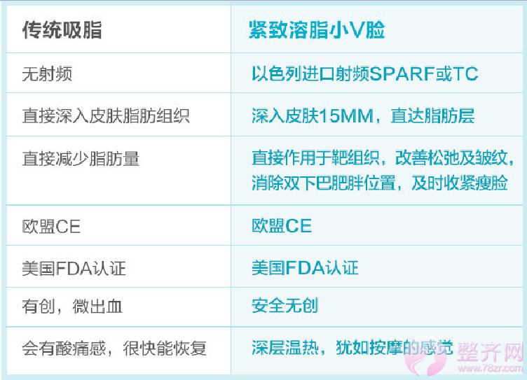紧致溶脂小V脸与其他塑身项目比较